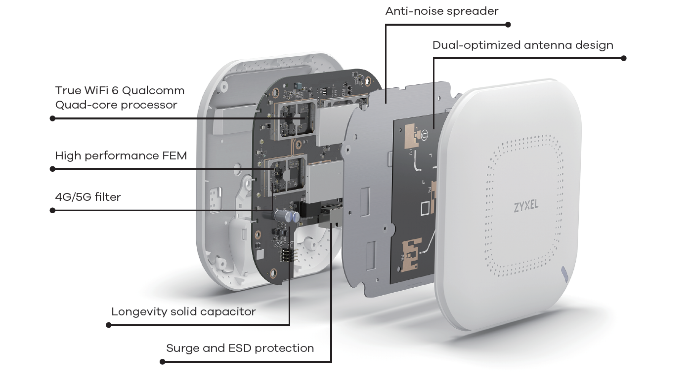 - Nebula Cloud Management: Use the free Nebula platform to centrally monitor and manage one or more access points from anywhere in the world – completely without license fees.